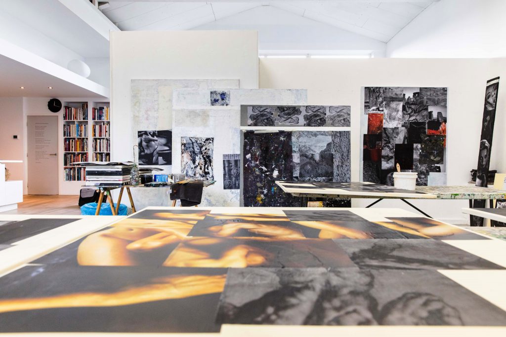 Alle schilderijen zijn acryl en/of fotocopy en/of textiel en/of filler.