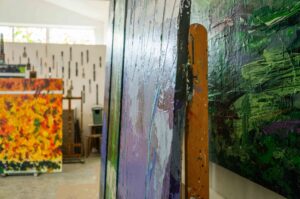 Online een schilderij kopen is geen reële optie. U wilt een schilderij goed kunnen bekijken in een ruimte zodat het materiaal, de grootte en kleur goed te zien zijn. Maak daarom een afspraak voor een atelierbezoek.